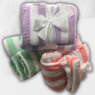 Purple Striped Plush Bath Towel Gift Set – Cozy Coral Fleece
