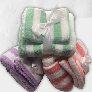 Green Striped Plush Bath Towel Gift Set – Soft & Cozy Coral Fleece