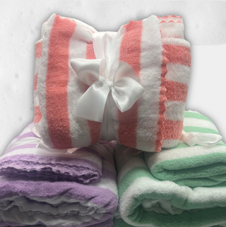 Pink Striped Plush Bath Towel Gift Set – Ultra Soft & Absorbent